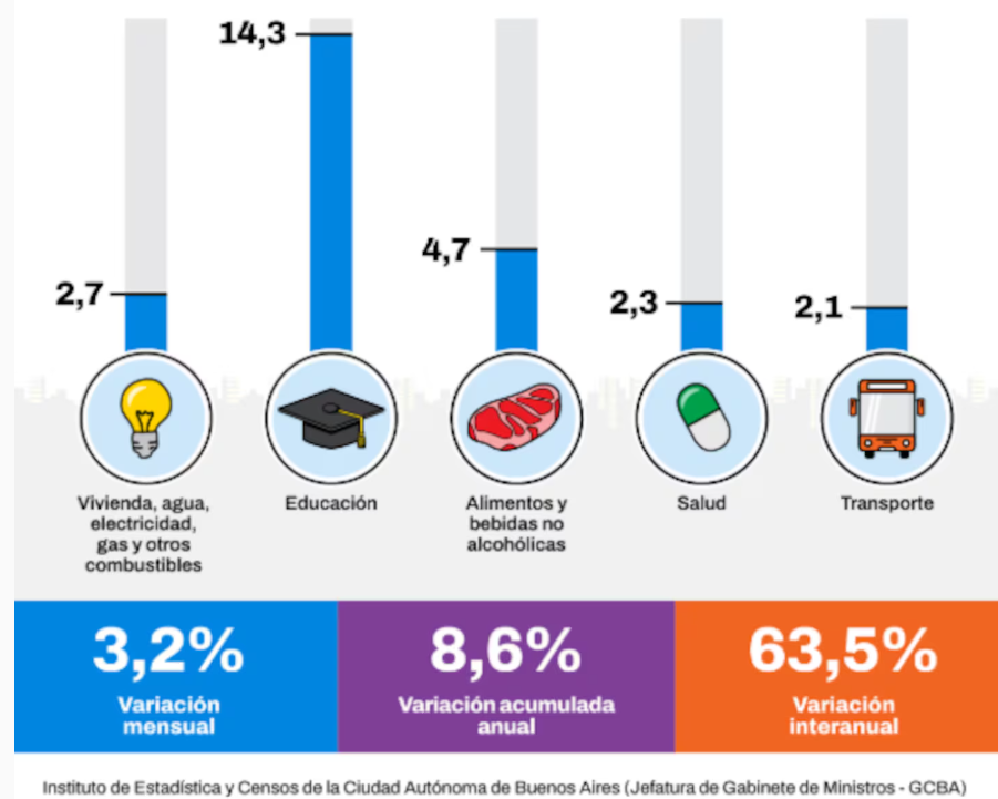 La variación mensual de los precios porteños estuvo impulsada por aumentos en los rubros Educación; Alimentos y bebidas; Prendas de vestir y calzado.