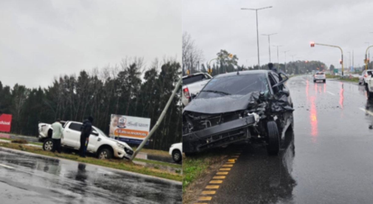 Como consecuencia del choque, el Etios resultó con graves daños en su parte delantera, aunque el conductor salió ileso gracias a la activación de los airbags. La camioneta, en tanto, sufrió importantes destrozos al chocar contra la columna. Tras el impacto, los vehÃculos quedaron inmovilizados en la traza: el Etios sobre la calzada y la Ranger sobre el cantero central, a la espera de ser retirados.
