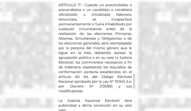 Posteriormente, la Justicia Electoral debe realizar "los corrimientos necesarios a fin de ordenarla respetando los requisitos de conformación paritaria" que exige el Código Electoral Nacional. Esto significa que la lista final debe mantener la alternancia de un candidato de cada género.