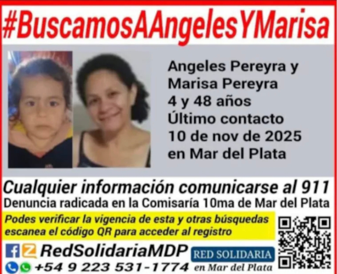 Ya pasaron más de diez días desde que Marisa Pereyra, de 48 años, y su hija Ángeles, de 4, desaparecieron en Mar del Plata sin dejar rastros. La familia inició una búsqueda desesperada mientras reclama respuestas urgentes y asegura que la investigación avanza a paso lento. La causa por “averiguación de paradero” tramita en la UFI N° 5 de General Pueyrredón, a cargo del fiscal Alejandro Pellegrinelli, quien pidió el análisis de las cámaras de seguridad, tanto municipales como privadas, para reconstruir el trayecto desde el barrio Autódromo hasta la terminal de ómnibus, ya que una de las pistas apunta a que ambas tomaron un colectivo hacia el Gran Buenos Aires. Según contó Miguel, hermano de Marisa, a , todavía no tuvieron novedades concretas y que las imágenes de las cámaras de la terminal recién estarán disponibles la semana que viene, porque la DDI sigue analizando más de 24 horas de registros. “No tenemos la hora exacta en la que habría subido al colectivo, así que hay que revisar todo”, explicó. Madre e hija fueron reportadas como desaparecidas el 10 de noviembre. La policía reconstruyó que el día anterior salieron muy temprano de su casa en el barrio Autódromo y se dirigieron a la terminal de micros. La familia se enteró de la situación tres días después, cuando el dueño del departamento avisó que una vecina no las veía desde el lunes. “El viernes 7 yo fui a la casa a pintarle el techo. Habíamos quedado que el miércoles siguiente iba a pintarle el resto del departamento. El lunes, cuando me avisaron que no estaba, nos pusimos a averiguar. Nadie sabía nada, nadie las había visto. Ahí comenzó toda la preocupación”, relató Miguel. La escena en el departamento sumó más misterio, ya que no había desorden ni faltaban pertenencias. Marisa había dejado de usar el celular hacía tiempo porque no funcionaba. “No tenía redes, no se manejaba con tecnología, pero estábamos muy en contacto. Yo pasaba dos o tres veces por semana por la casa”, agregó su hermano. En las últimas horas, la DDI de Mar del Plata detectó que se emitieron dos pasajes de micro a nombre de Marisa con destino a San Miguel, zona noroeste del Gran Buenos Aires. Cada boleto costó cerca de 60 mil pesos y fueron pagados en efectivo, un dato que llamó la atención de los investigadores y de la familia. “Marisa no disponía de ese dinero”, insistió Miguel. Sin trabajo y aislada: cómo era la vida de la mujer desaparecida Marisa es radióloga, pero dejó de trabajar cuando quedó embarazada y se dedicó de lleno a la crianza de su hija. En los últimos años, atravesó dificultades económicas. “La ayudábamos con todo: mi mamá le pagaba el alquiler, nosotros le llevábamos mercadería. Lo que ella cobraba de asignación era para gastos mínimos”, explicó Miguel. Una de las líneas de investigación que baraja la Justicia sostiene que Marisa podría haber viajado bajo una promesa de trabajo, posiblemente engañada, hasta Buenos Aires. La confirmación de la compra de los pasajes refuerza esa hipótesis, pero todavía falta saber si madre e hija realmente subieron al colectivo. Por eso es que la familia pidió acceder a las cámaras de la terminal para despejar dudas. “Hasta que no veamos las imágenes, no sabremos si fueron ellas o si alguien compró los pasajes. Los choferes colaboraron, pero no pudieron asegurar nada. Esa línea tiene muchas paradas, se pudieron haber bajado en cualquier lugar”, detalló el hermano. Según su entorno, Marisa tenía autonomía para manejarse sola: iba al supermercado, usaba las tarjetas, viajaba en transporte público. Sin embargo, en los últimos años atravesó un cuadro depresivo que la volvió más reservada y aislada. “No tenía mucha comunicación con la gente y era muy cautelosa. No nos hablaba de parejas, no socializaba, no dejaba que la nena jugara con otros chicos”, contó Miguel. En medio de la desesperación, la familia realizó una marcha frente a la Municipalidad de General Pueyrredón para pedir mayor difusión del caso y reforzar la búsqueda. “Queremos saber si están bien. Si se fue por su propia voluntad, que lo diga. Y si no fue así, que la Justicia intervenga. Lo único que pedimos es que se viralicen las fotos y que cualquier persona que las haya visto lo informe”, sostuvo Miguel. Mientras tanto, los investigadores siguen analizando cámaras, reconstruyendo movimientos y recopilando testimonios de los vecinos. La incertidumbre crece con el paso de los días y la familia insiste: “Estamos muy preocupados y necesitamos respuestas”.