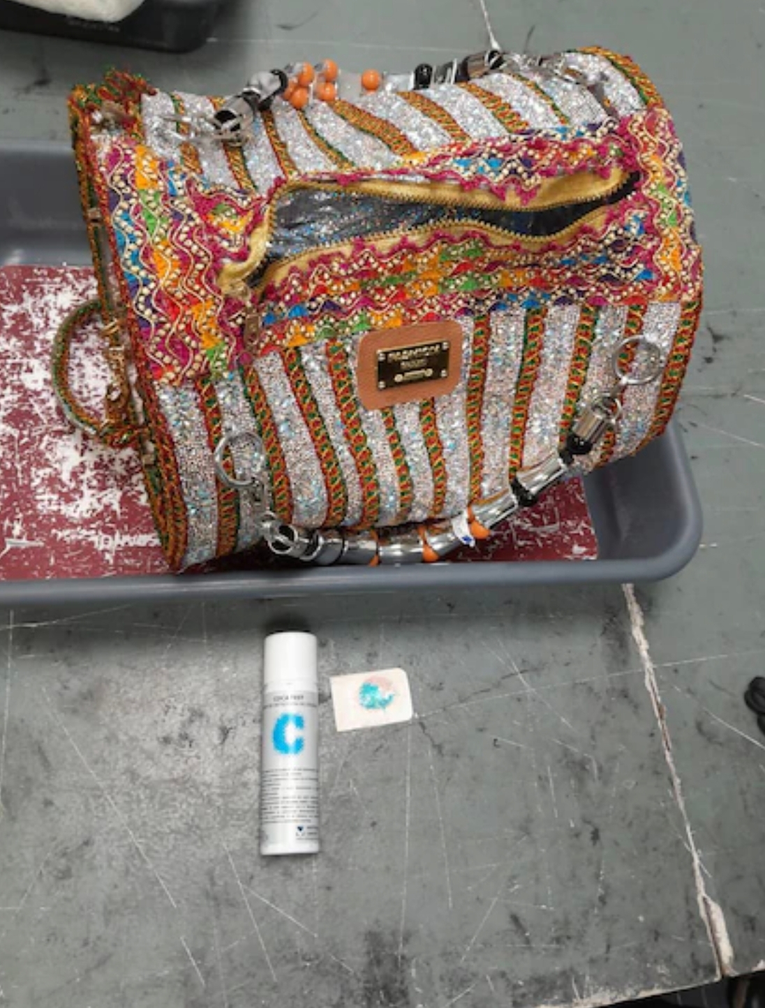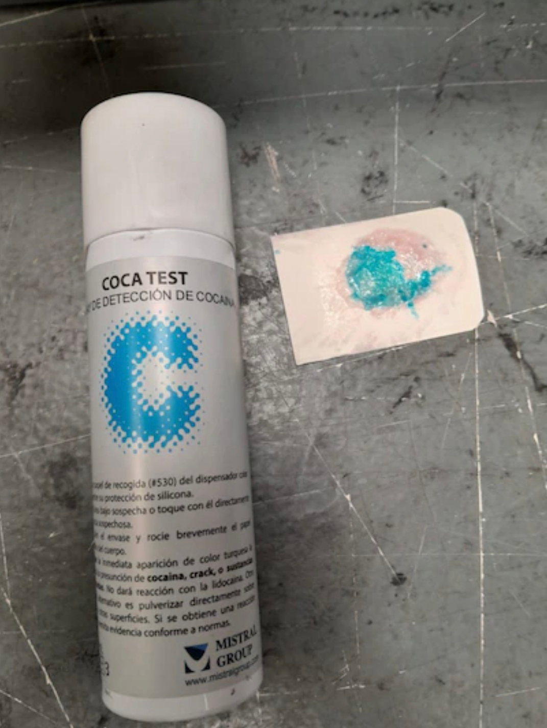La verificación incluyó un test reactivo, conocido como “coca test”, sobre la ropa y otros objetos dentro del equipaje. El resultado, según el parte oficial, fue una colorimetría turquesa que indicó presunta presencia de clorhidrato de cocaína.