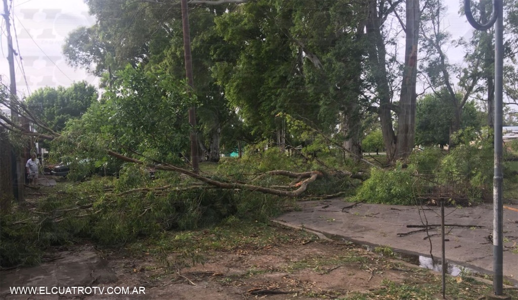 El temporal que azotó ayer a la ciudad de Bahía Blanca, y causó 13 muertes, ésta madrugada llegó en la región. Causó voladura de techos, caída de árboles, falta de suministro eléctrico y corte de trenes