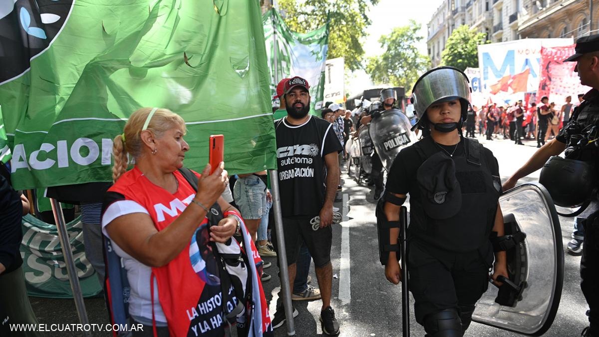 Columnas de manifestantes pertenecientes a las dos CTA, a la Unidad Piquetera (UP), la UTEP, la Corriente Clasista y Combativa (CCC) y el Movimiento Evita, entre otras, se ubicaron a lo largo de la avenida Rivadavia, dejando solo un carril para el tránsito y ante la atenta vigilia de un cordón de efectivos de la Policía Federal y de la Policía de la Ciudad. Un grueso cordón de efectivos de la Prefectura Naval Argentina (PNA) y de la Policía Bonaerense cortaban desde las 11 una de las subidas del Puente Pueyrredón, desde la localidad de Avellanada hacia Capital Federal.El operativo de seguridad -realizado en la subida de la avenida Mitre, de la localidad bonaerense de Avellaneda- se concreto debido a la presencia de una muy numerosa columna de sindicatos enrolados en al CGT -entre ellos camioneros, Uocra y de Smata- y de los distintos movimientos sociales quienes intentaban de esta forma cruzar a la Ciudad de Buenos Aires, rumbo al Congreso Nacional. Ante la presencia de los manifestantes, personal de Tránsito de la Ciudad desviaba a colectivos, taxis y conductores particulares hacia las avenidas Corrientes y Belgrano.