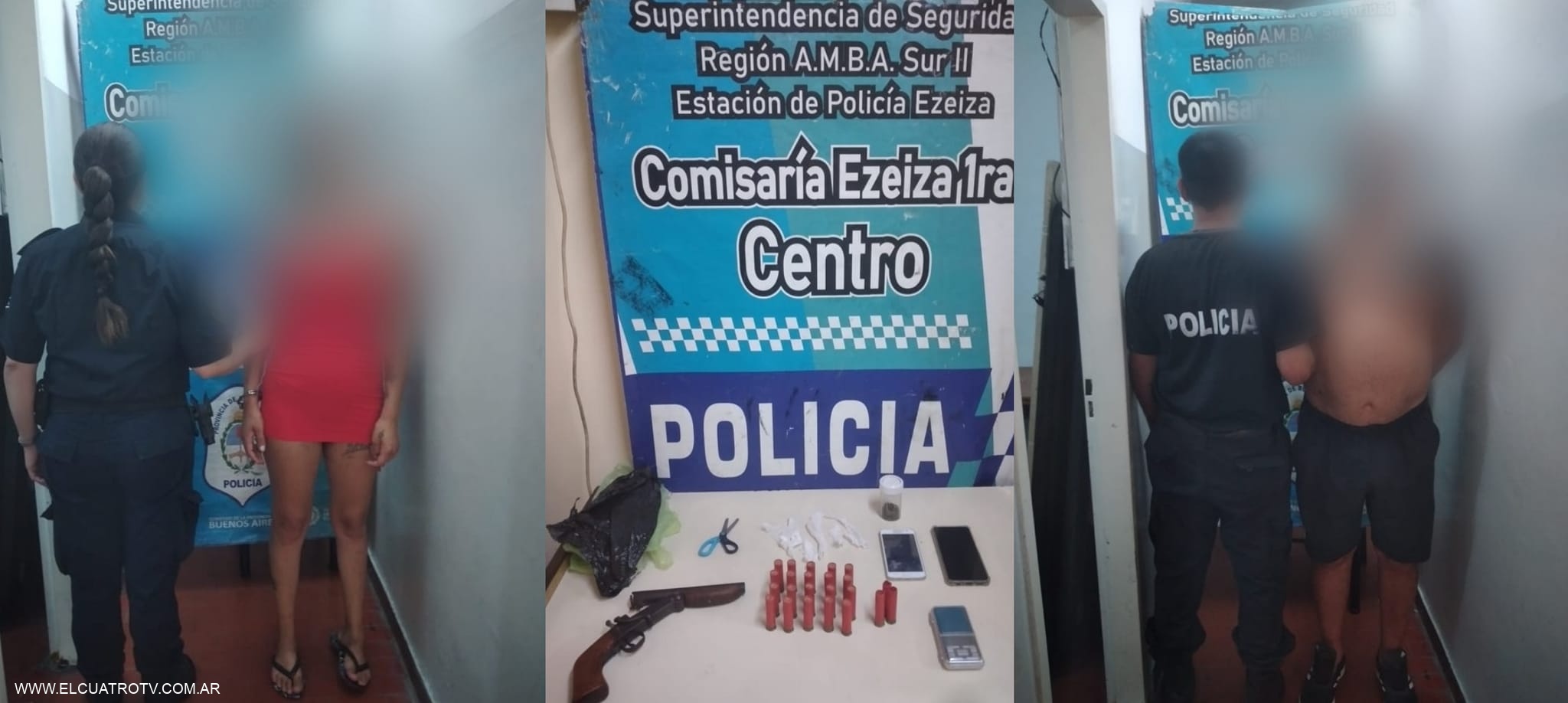 La operación, parte de un recorrido de rutina, dio como resultado la incautación de armas y sustancias narcóticas, Durante la identificación y el registro preventivo de los sospechosos, en presencia de un testigo, encontraron entre sus pertenencias un arma de tipo cuchillo blanco con un marco de color blanco, así como dos carcasas de nylon blanco con contenía clorhidrato de cocaína, con un peso de 5,3 gramos. Los individuos y el testigo fueron llevado a la comisaría primera de Ezeiza, donde se realizó una prueba oriental que confirmó la presencia de las mencionadas sustancias.