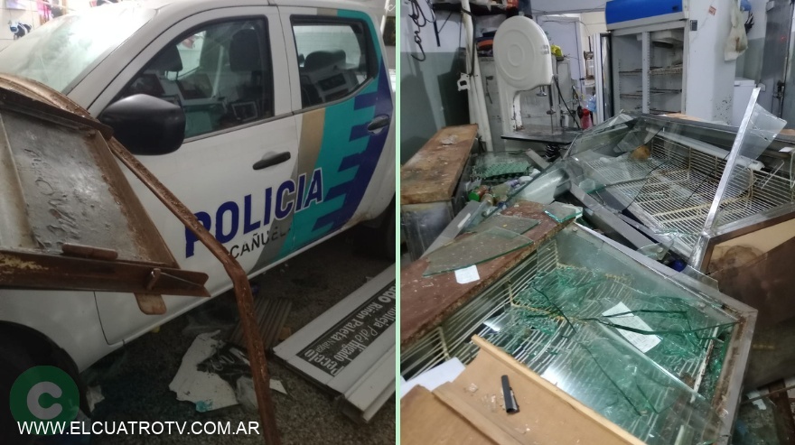 Fue una madrugada de terror para los dueños de la “Carnicería Los Bachitos” de Máximo Paz. Una camioneta policial se incrustó por el frente generando un destrozo total al comercio fundado en 1966.