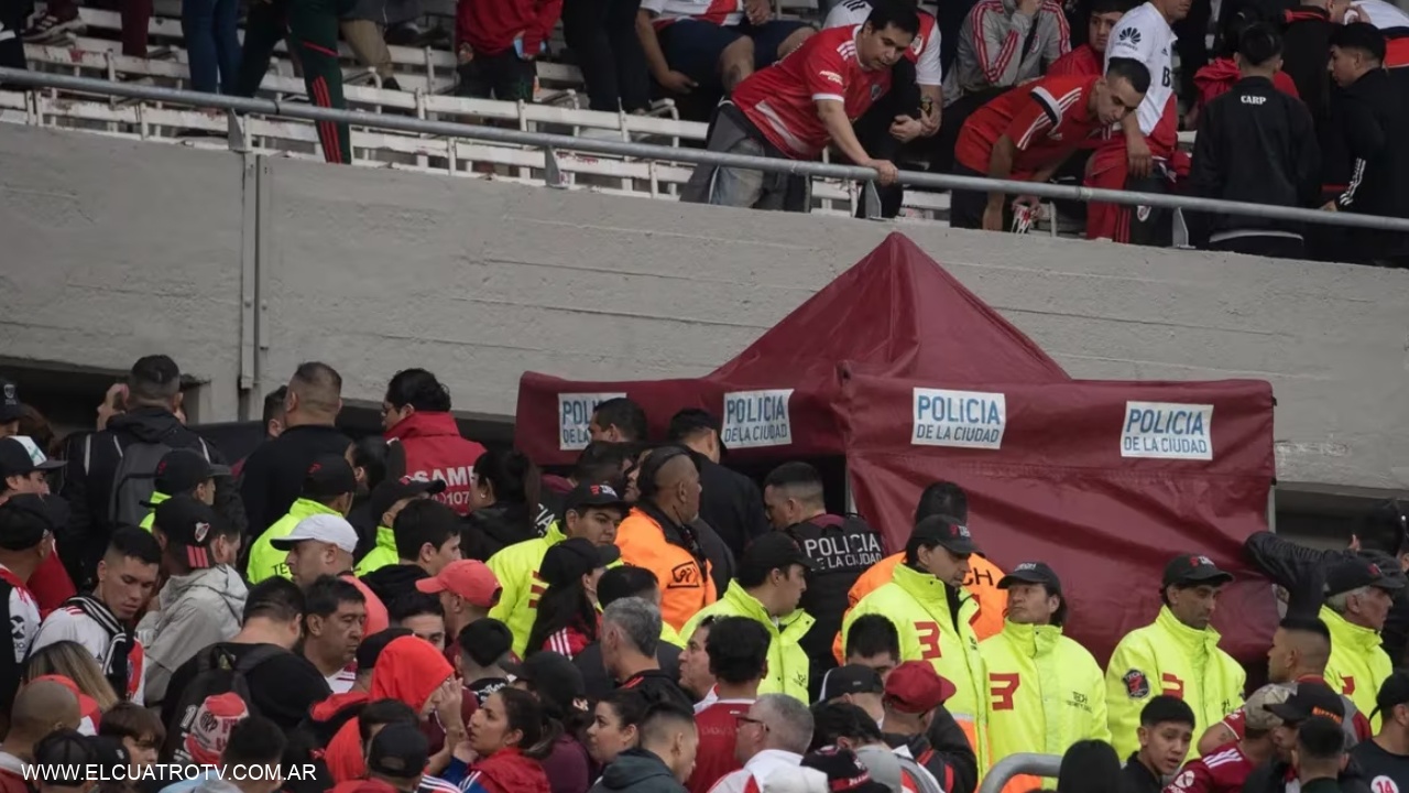 El juego fue detenido a los 26 minutos cuando se conoció la noticia de la caída de un simpatizante en la Sívori alta. River lo identificó como Pablo Marcelo Serrano. Por instrucción de la fiscal, clausuraron la tribuna por 24 horas para obtener elementos de prueba.