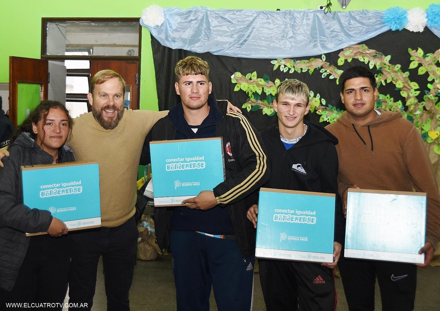 Cada vez son más los adolescentes que acceden a su netbook del programa Conectar Igualdad Bonaerense. Gastón Granados y el secretario de Educación y Deportes, Javier Fernández, participan activamente en cada entrega en las secundarias del distrito.