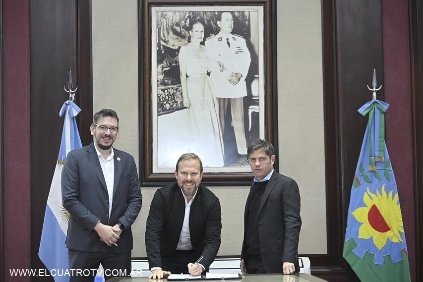El gobernador Axel Kicillof encabezó este martes junto al presidente del Banco Provincia, Juan Cuattromo, el acto de firma de contratos de leasing por $3.973 millones para la compra de bienes de capital en 10 municipios bonaerenses. Fue en Casa de Gobierno junto al ministro de Gobierno, Carlos Bianco; la jefa de Asesores, Cristina Álvarez Rodríguez; el presidente de Provincia Servicios Financieros, Ariel Lieutier, y la titular de Provincia Leasing, Valeria Dallera.