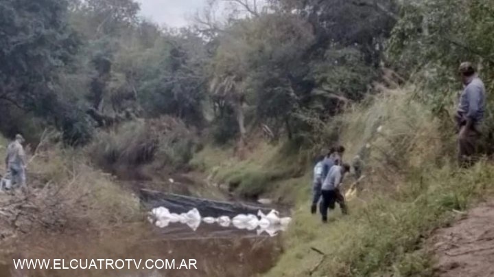 La zona donde se llevó a cabo el rastrillaje es un descampado, atravesado por el cruce del río. Pasadas las 15, fuentes policiales informaron sobre el descubrimiento de una bolsa que en su interior contenía restos oseos.