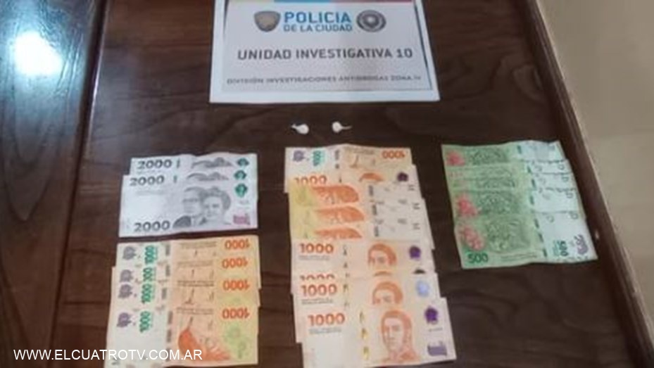 Los agentes, con la colaboración de la División Perros detectores de drogas, incautaron una bolsa de con 61 gramos de cocaína y otras 19 dosis fraccionadas en el lugar, listas para la venta.