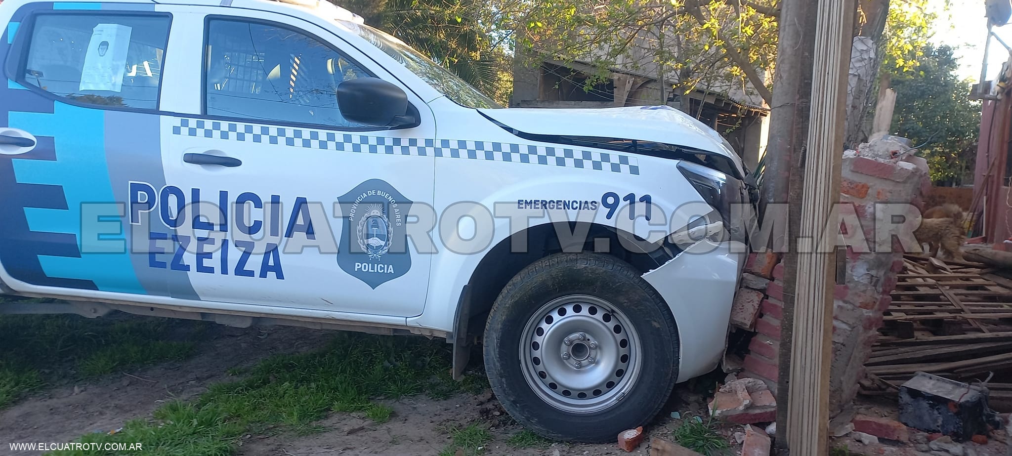 Un hecho que tuvo un desenlace milagroso ocurrió en las últimas horas en Ezeiza donde un patrullero acabó incrustado en la fachada de una vivienda particular.
