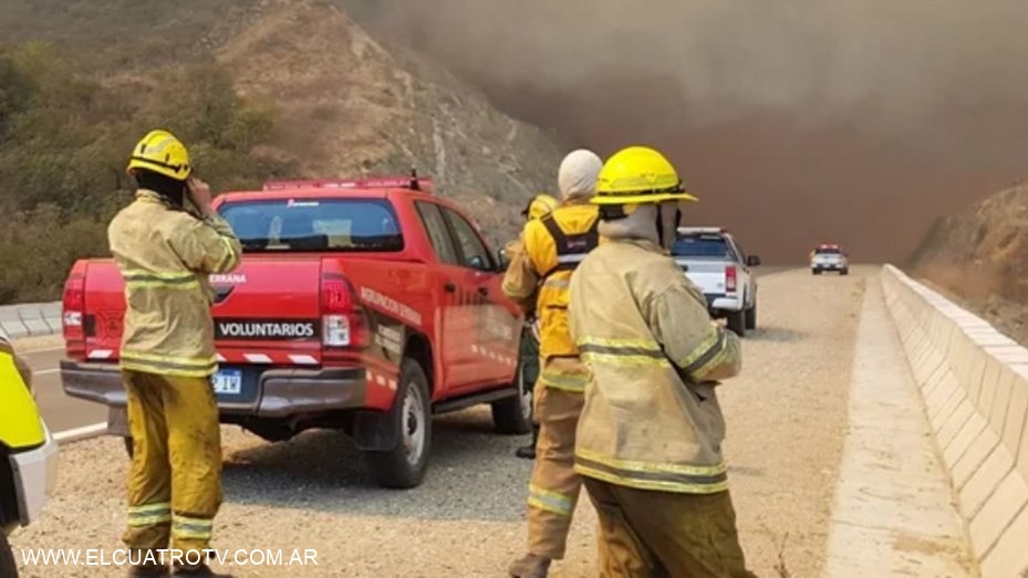 Por otra parte, continúan los incendios en la zona de la Quebrada de Mermela, en Chancaní, donde la policía debió cortar el tránsito en la ruta 28, debido a la presencia de humo en ese