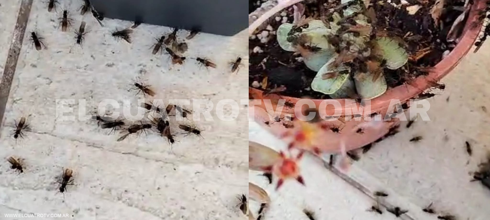 Distintos usuarios subieron videos y fotos a las redes sociales donde muestran la plaga de los insectos en los patios de las viviendas y los autos.