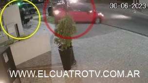 Todo quedó registrado por las cámaras de seguridad. Sucedió pasadas las 7 de la mañana, en la calle Fragio, entre Alvear y Lavalle. El conductor del Honda Fit rojo comenzó a circular de reversa e impactó contra un poste de luz al que rompió y pasó por encima.