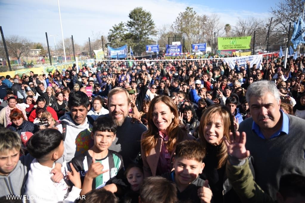Gastón y Dulce Granados acompañados de la ministra de Desarrollo Social, Victoria Tolosa Paz, llevaron a cabo la inauguración de un nuevo playón multideportivo en el barrio El Tala, totalmente acondicionado para la realización de distintas disciplinas.
