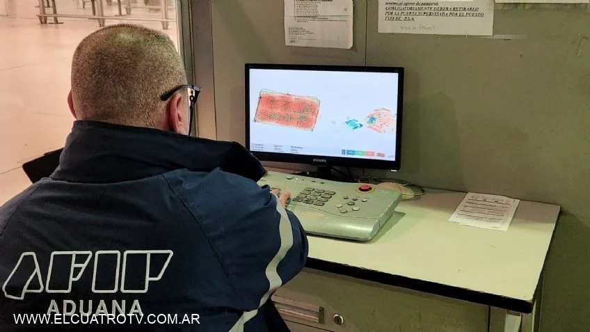 No fue la única infracción detectada en ese vuelo: otro control no intrusivo del escáner aduanero, identificó que un ciudadano argentino que había dicho no tener nada para declarar intentaba entrar al país con 10 luces LED tipo vincha de uso profesional y 3 flexibles de frenos hidráulicos, ambos productos de procedencia extranjera.