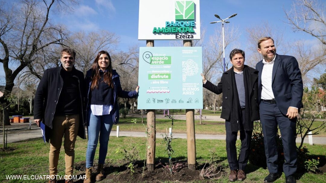 El gobernador Axel Kicillof y la ministra de Ambiente de la provincia de Buenos Aires, Daniela Vilar, inauguraron un parque ambiental en el partido de Ezeiza, en el marco de una serie de actividades realizadas el jueves en el distrito.