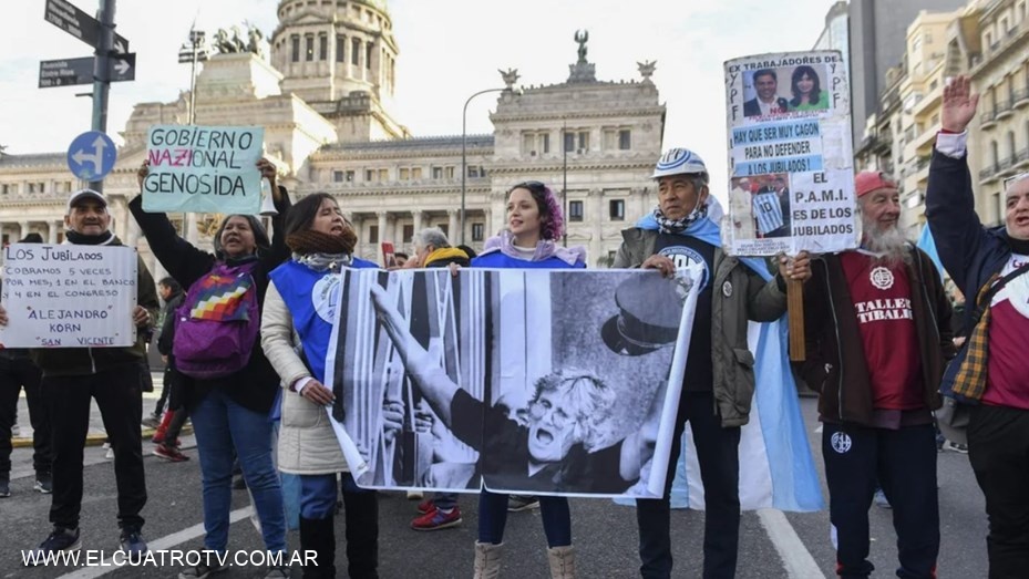 La movilización, que se efectuaba como todos los miércoles, fue convocada en reclamo de un aumento en los haberes, la restitución de los medicamentos gratuitos del PAMI y contra el veto de Milei a la reforma del año pasado que establecía un incremento para el sector previsional.