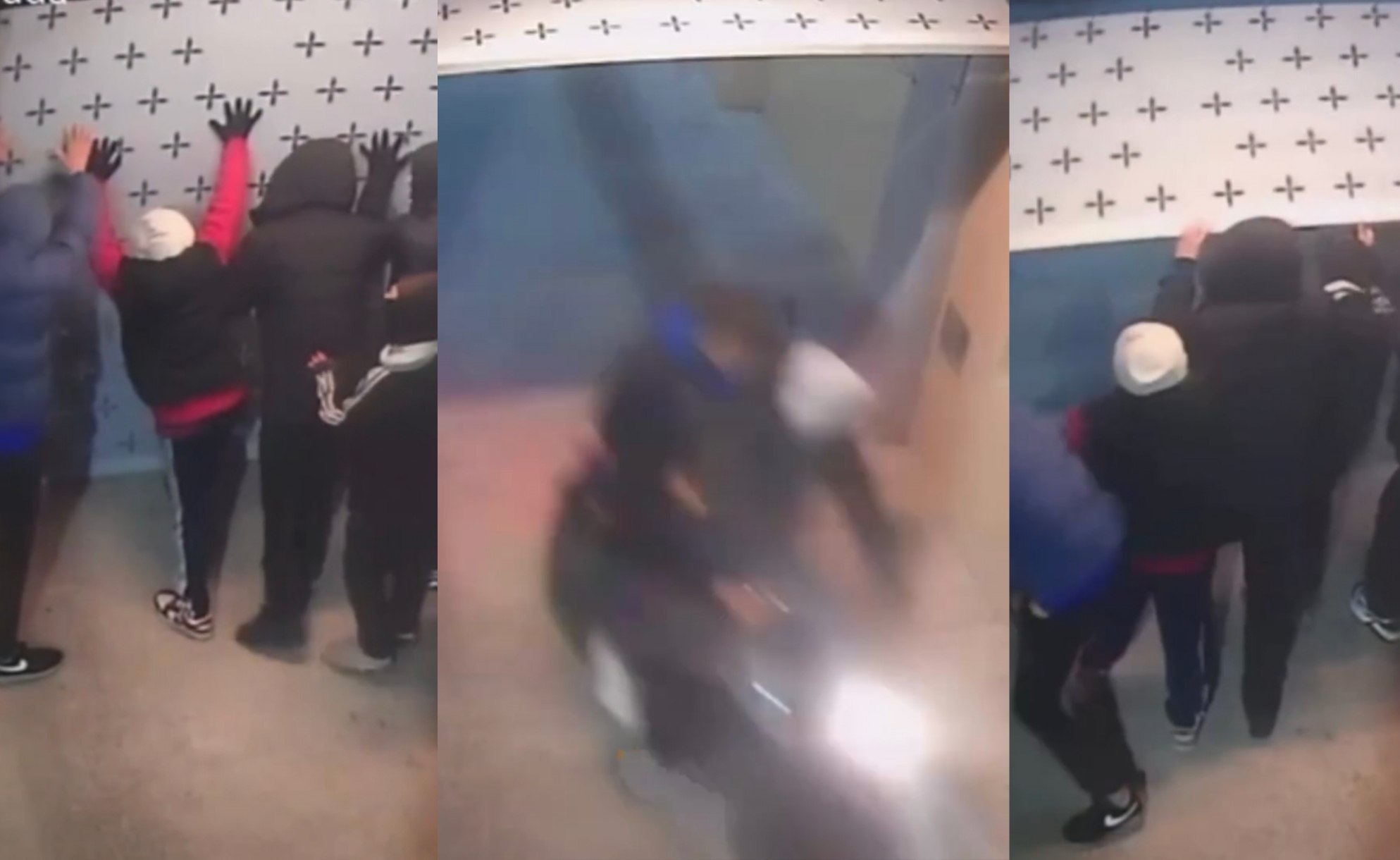 El "grupo de 7" quedó registrado por las cámaras de seguridad de los edificios. Los delincuentes asaltaron anoche distintos edificios del centro de Monte Grande alrededor de las 2 AM.