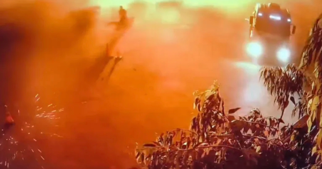 Cuando se desataron las llamas, la escena quedó completamente roja por el fuego y se mantuvo así durante varios segundos.