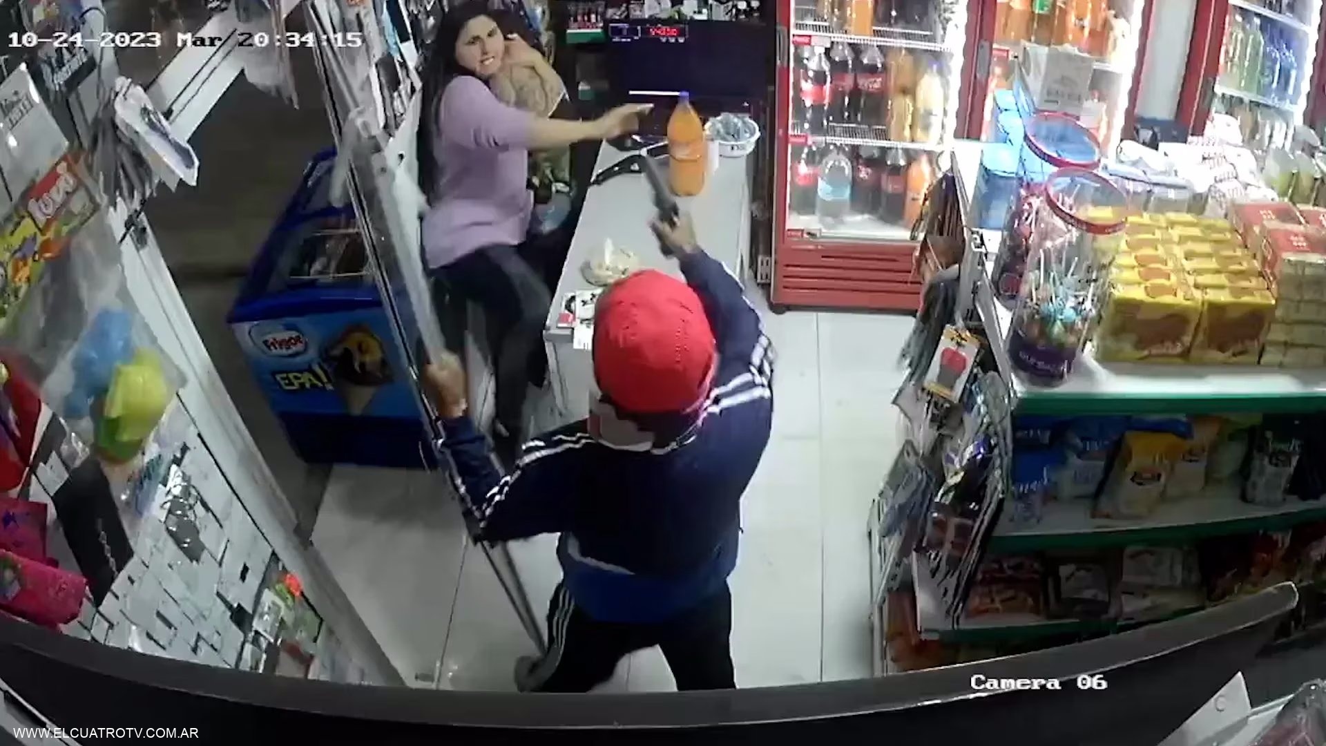 Ante esta situación, mientras el cliente retrocedió unos pasos y buscó refugio, la mujer intentó trabar la puerta con su pie. Pero el ladrón la abrió de una patada e inmediatamente arremetió contra ella, que atinó a abrazar y proteger a su bebé.