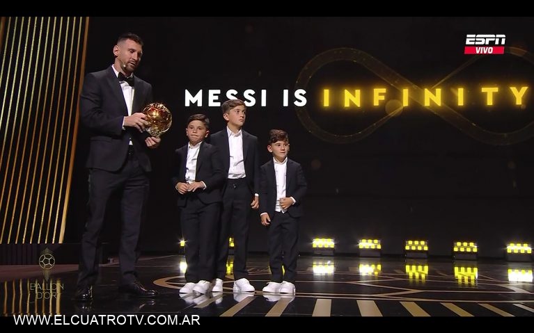Ya con el trofeo en su poder, y antes de hacer subir a sus tres hijos al escenario, recordó a Diego Maradona, quien este 30 de octubre cumpliría años. «Diego, esto es para vos», dijo Messi.